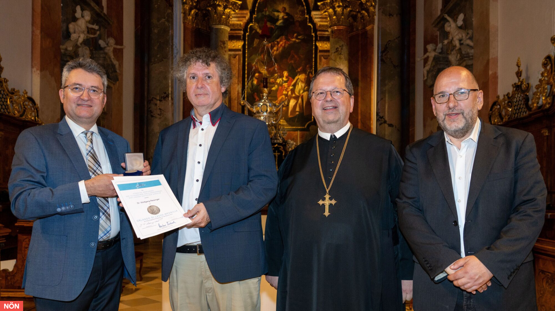 Als besonderes Highlight fand im Anschluss die Verleihung der Orlando-di-Lasso-Medaille* durch Johann Simon Kreuzpointner, Präsident der österreichischen Kirchenmusikkommission, an den langjährigen musikalischen Leiter Wolfgang Reisinger statt.